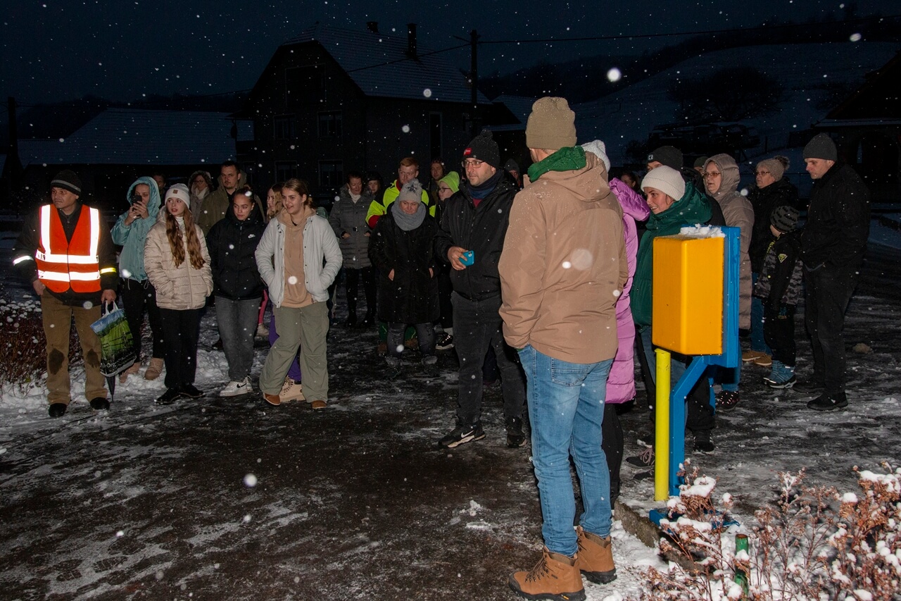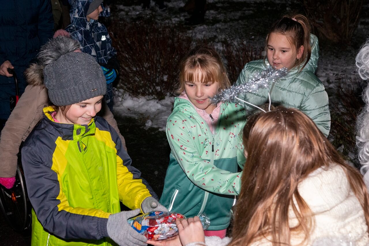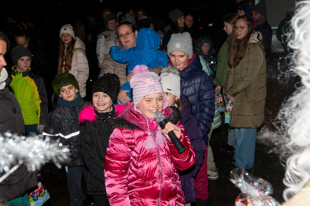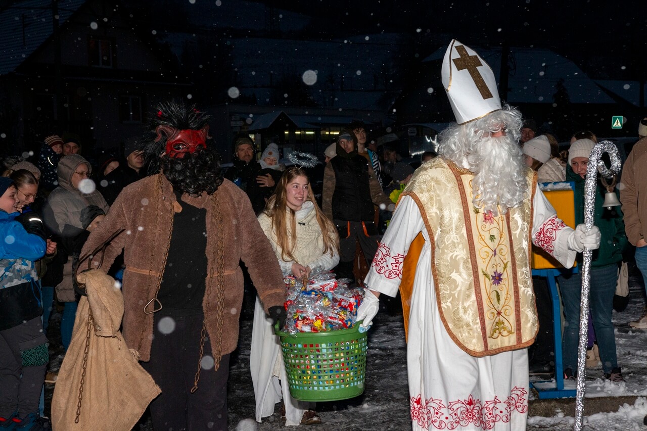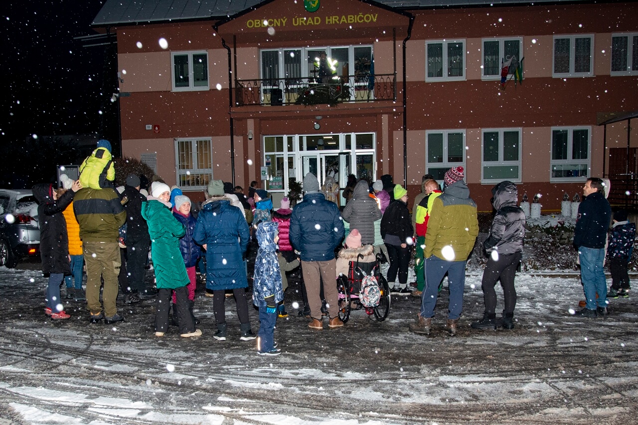 Privítanie Mikuláša pred obecným úradom.